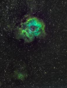 Der Rosettennebel ist ein diffuser Emissionsnebel mit eingebettetem offenen Sternhaufen, der den Nebel zum Leuchten bringt, im Sternbild Einhorn. Heute bezeichnen die NGC-Objekte NGC 2237, NGC 2238, NGC 2239 und NGC 2246 verschiedene Teile des Nebels. Die Entfernung zur Erde beträgt 5219 Lichtjahre. Sein Radius beträgt 65 Lichtjahre.