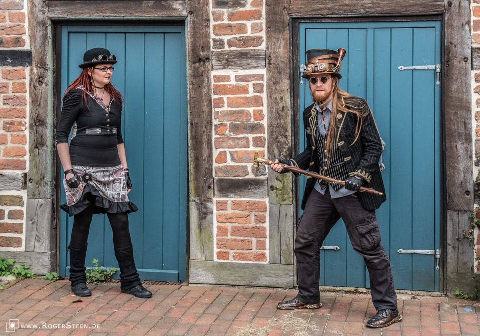 Den von europafoto Köpcke veranstalteten Fotowalk Steampunk habe ich als Reportagefotograf begleitet. Im Vorwege konnte ich die "Models" - Professor Abraxo mit seiner Zeitmaschine, Hannes McDrok Kurth von Jesnes und Kaddy Corsair - für diese Aktion gewinnen. Es hat allen ersichtlichen Spaß gemacht und war eine gelungene Aktion. Die Shooting-Location lag etwas abseits des Trubels und so konnten die Fotografen in aller Ruhe Ideen entwickeln und ausprobieren.