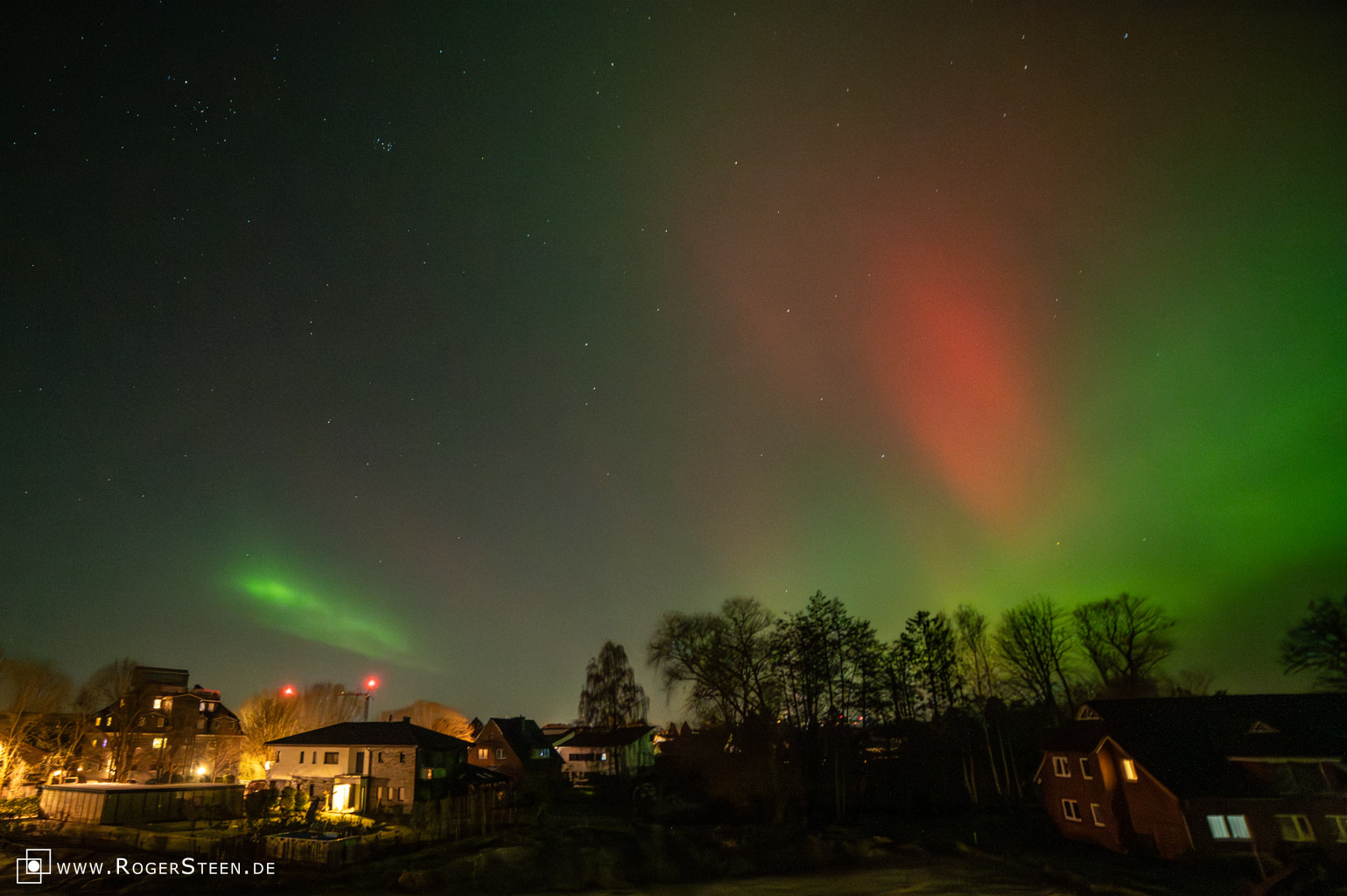 Es war eine Nacht der Nächte. Ich habe die Polarlichter über Norddeutschland / Buxtehude zwischen 19:39 Uhr und 01:48 Uhr fotografisch festgehalten. Es begann ganz unspektakulär mit etwas grün und rot am Himmel und endete in visuell sichtbaren Polarlichtern.